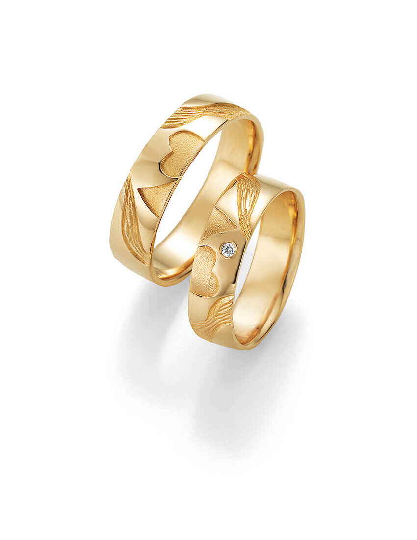 333er als auch 585 Gold ist für Trauringe besonders geeignet. Je höher der Goldgehalt, desto näher gelangt die Farbe an den angenehm warmen Ton des reinen Goldes.